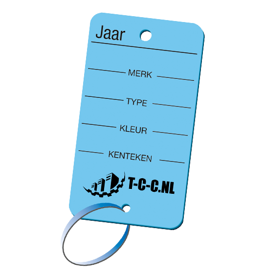 Hoog kwalitatief kunststof, met stalen ring en standaard opdruk.