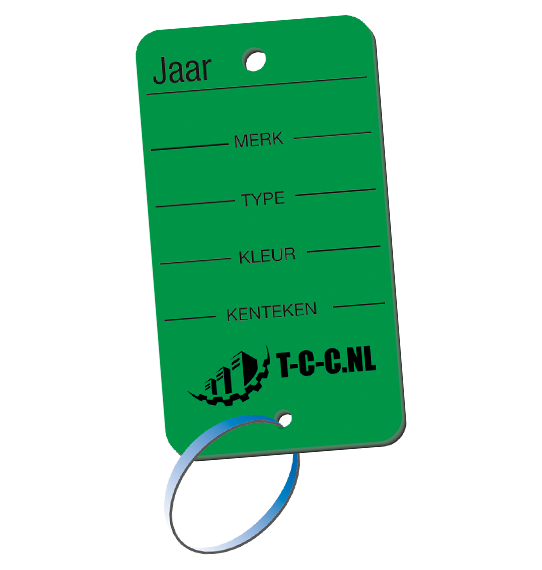 Hoog kwalitatief kunststof, met stalen ring en standaard opdruk.